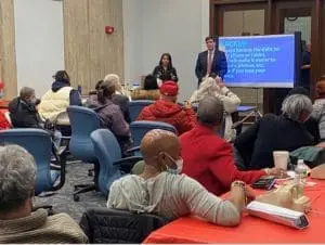 The event was attended by AgeStrong Commissioner Emily Shea, who helped introduce the CyberAware workshop. City of Boston representatives were also on-hand to discuss the federal government’s Affordable Connectivity Program with attendees.
