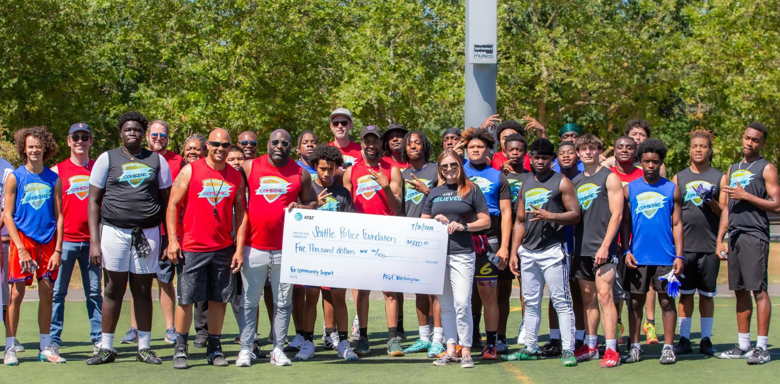 - Seattle Police Foundation (July 20): Joined by Hall of Famer and former Seattle Seahawks great Walter Jones, the Seattle Police Foundation and the Seattle Police Department’s Community Service Officers held a youth football combine with high school student athletes. AT&T provided 100 laptops and backpacks to Seattle Police Foundation, some of which were provided to combine participants with the remainder being distributed by the Foundation to Seattle students throughout the school year. AT&T presented the Seattle Police Foundation a check for $5,000 to support additional community outreach in Seattle.