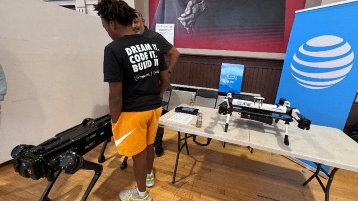 Curiosity brought most kids over to check out AT&T’s sleek, black four-legged robot walking around Brooklyn’s Major R. Owens Community Center, but their love of STEM kept them there asking question after question. From, “What is it?” and “Can it see me?” to more detailed inquiries about the robot dog’s power source, durability, battery life and remote capabilities, the group of middle and high school students peppered AT&T technicians – and impressed them with their interest in and knowledge of advanced technology.